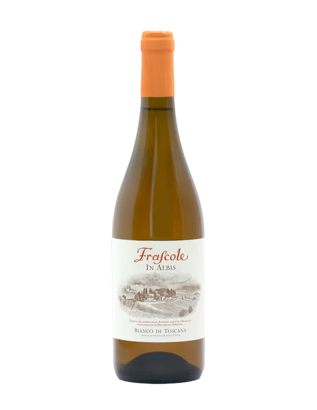 È Trebbiano, coltivato nella valle più a nord, rivolto al monte Falterona. In questa terra, da sempre vocata a questo vitigno, attinge nelle sue profondità mineralità e sapidità. Frascole bianco, In Albis appunto.